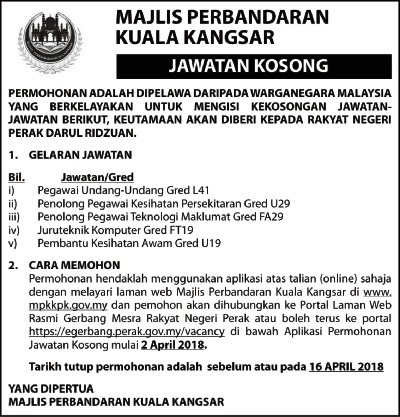 - Nama Majikan: Majlis Perbandaran Kuala Kangsar