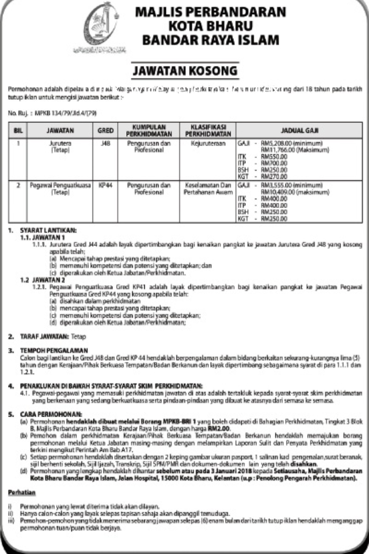 - Nama Majikan: Majlis Perbadanan Kota Bharu