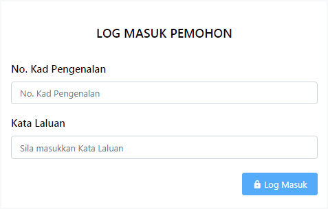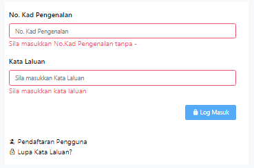 6. Masukkan No. Kad Pengenalan dan Kata Laluan Baru anda dan klik Log Masuk