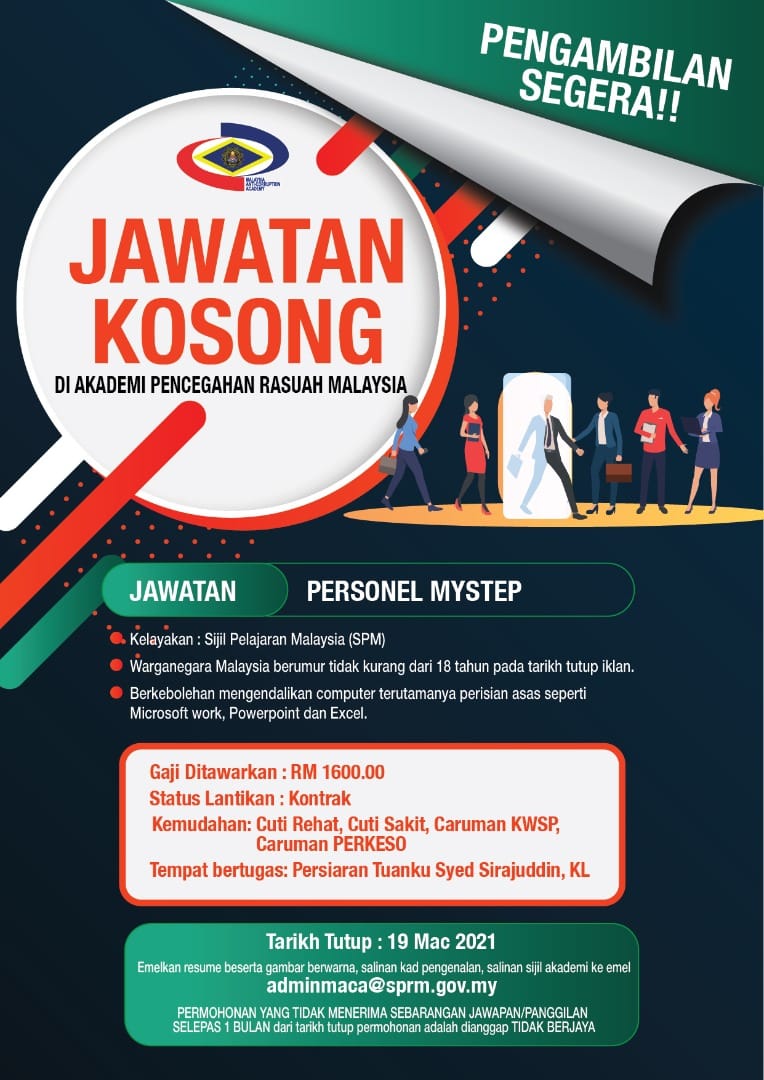 Jawatan Kosong Akademi Pencegahan Rasuah Malaysia Like serta Ikut Facebook Kami, follow Chanel WhatsApp Jawatan Kosong & Telegram Portal SPA9 untuk capaian pantas kekosongan jawatan daripada kami sekarang.