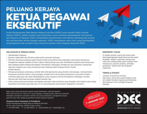 Jawatan Kosong Pusat Pembangunan Reka Bentuk Malaysia (DDEC) Like serta Ikut Facebook Kami, follow Chanel WhatsApp Jawatan Kosong & Telegram Portal SPA9 untuk capaian pantas kekosongan jawatan daripada kami sekarang.