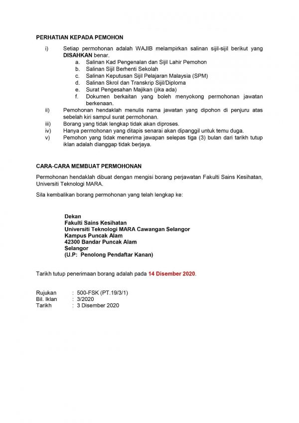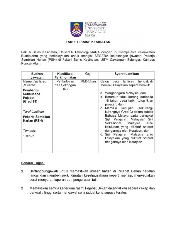 Jawatan Kosong Universiti Teknologi Mara (UITM) Like serta Ikut Facebook Kami, follow Chanel WhatsApp Jawatan Kosong & Telegram Portal SPA9 untuk capaian pantas kekosongan jawatan daripada kami sekarang.