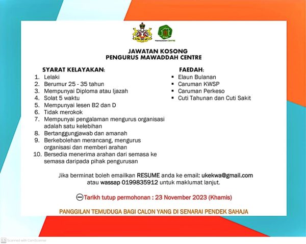 Ikaln Jawatan Mawaddah Centre Like serta Ikut Facebook Kami, follow Chanel WhatsApp Jawatan Kosong & Telegram Portal SPA9 untuk capaian pantas kekosongan jawatan daripada kami sekarang.