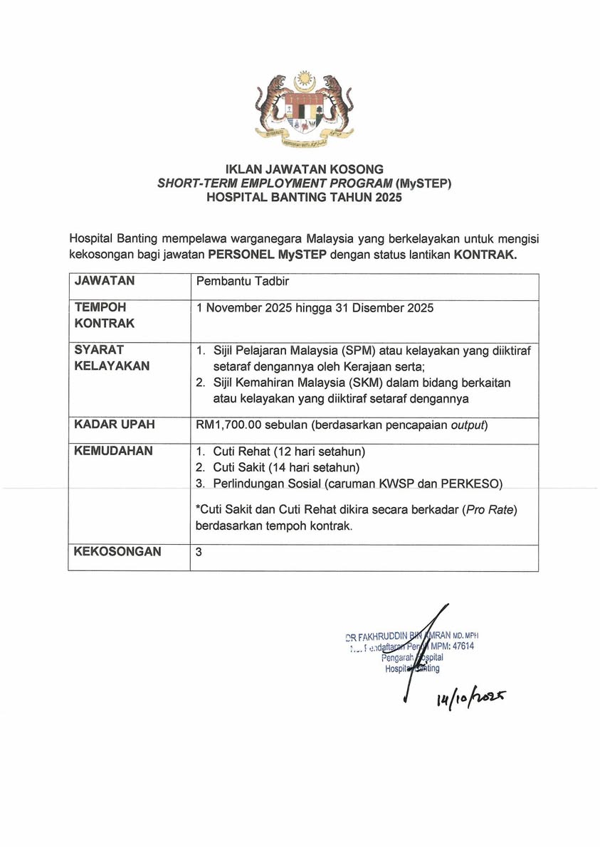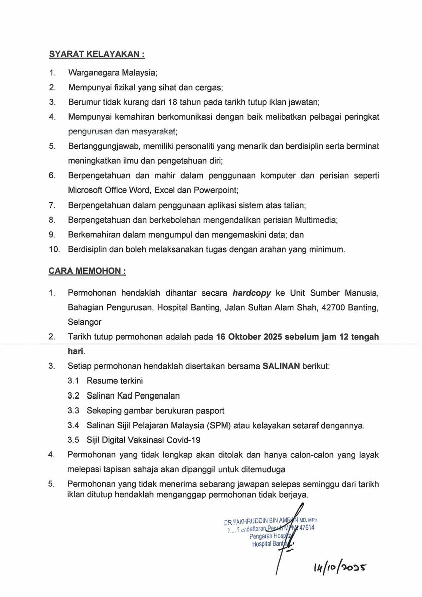 Ikaln Kini Jawatan Hospital Banting Like serta Ikut Facebook Kami, follow Chanel WhatsApp Jawatan Kosong & Telegram Portal SPA9 untuk capaian pantas kekosongan jawatan daripada kami sekarang. Klik Iklan Jawatan