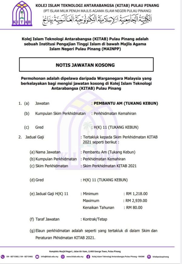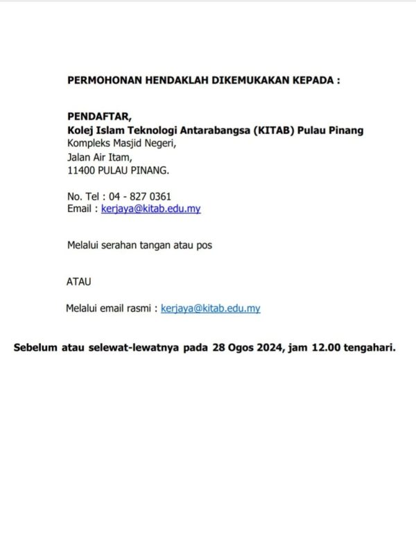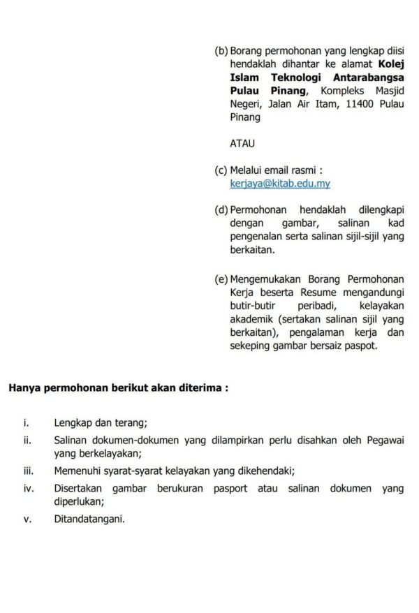 Ikaln Kini Jawatan Kolej Islam Teknologi Antarabangsa Pulau Pinang- Rasmi Klik Jawatan Disini Like serta Ikut Facebook Kami, follow Chanel WhatsApp Jawatan Kosong & Telegram Portal SPA9 untuk capaian pantas kekosongan jawatan daripada kami sekarang.