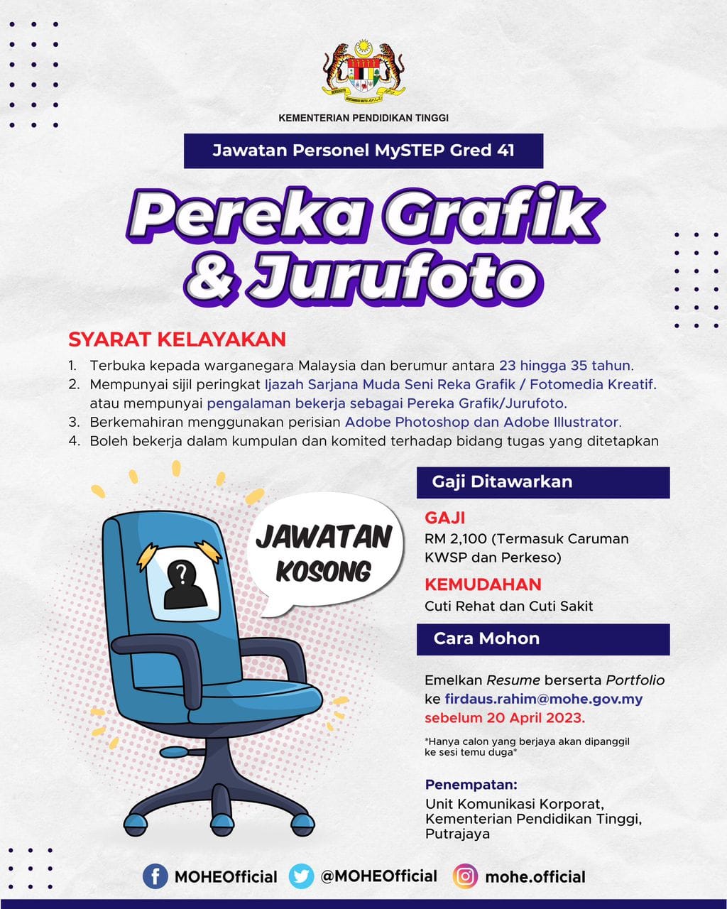 Iklam Jawatan Kementerian Pendidikan Tinggi (KPT) Like serta Ikut Facebook Kami, follow Chanel WhatsApp Jawatan Kosong & Telegram Portal SPA9 untuk capaian pantas kekosongan jawatan daripada kami sekarang.