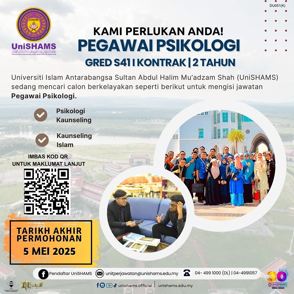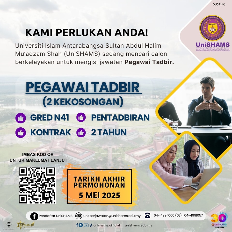 Iklan Baharu Jawatan Kosong Universiti Islam Antarabangsa Sultan Abdul Halim Mu’adzam Shah (UniSHAMS)