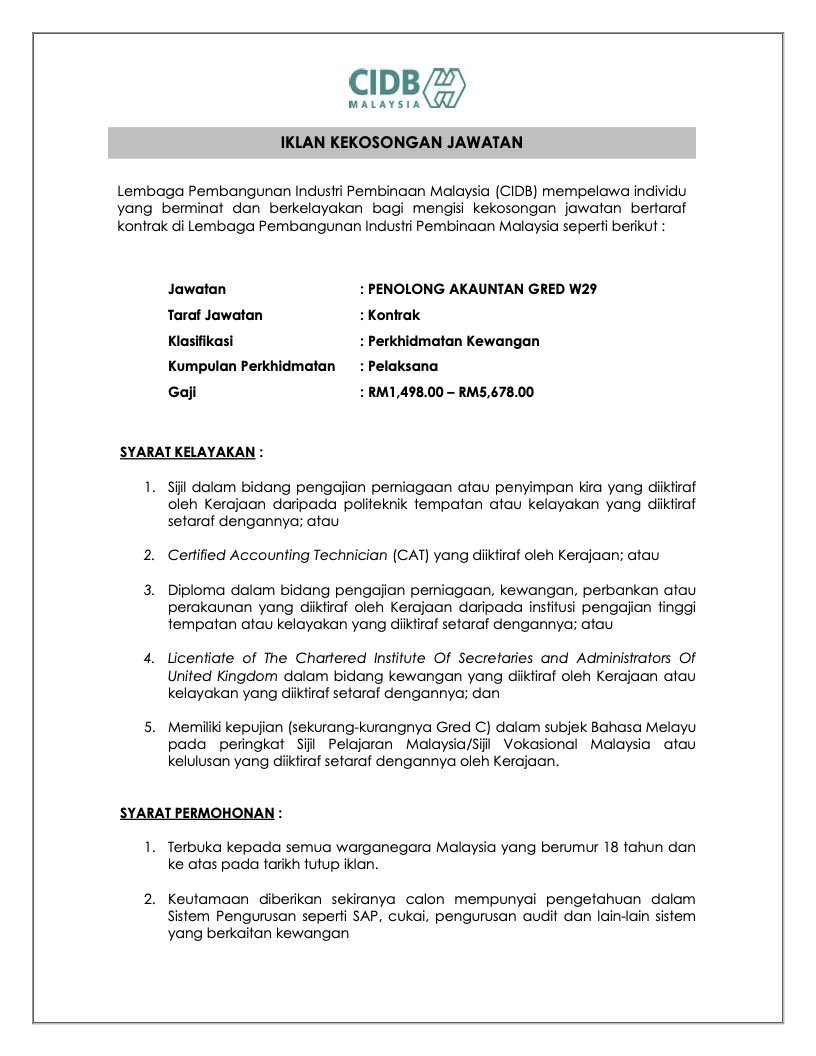 Iklan Jawatan CIDB Malaysia Like serta Ikut Facebook Kami, follow Chanel WhatsApp Jawatan Kosong & Telegram Portal SPA9 untuk capaian pantas kekosongan jawatan daripada kami sekarang.