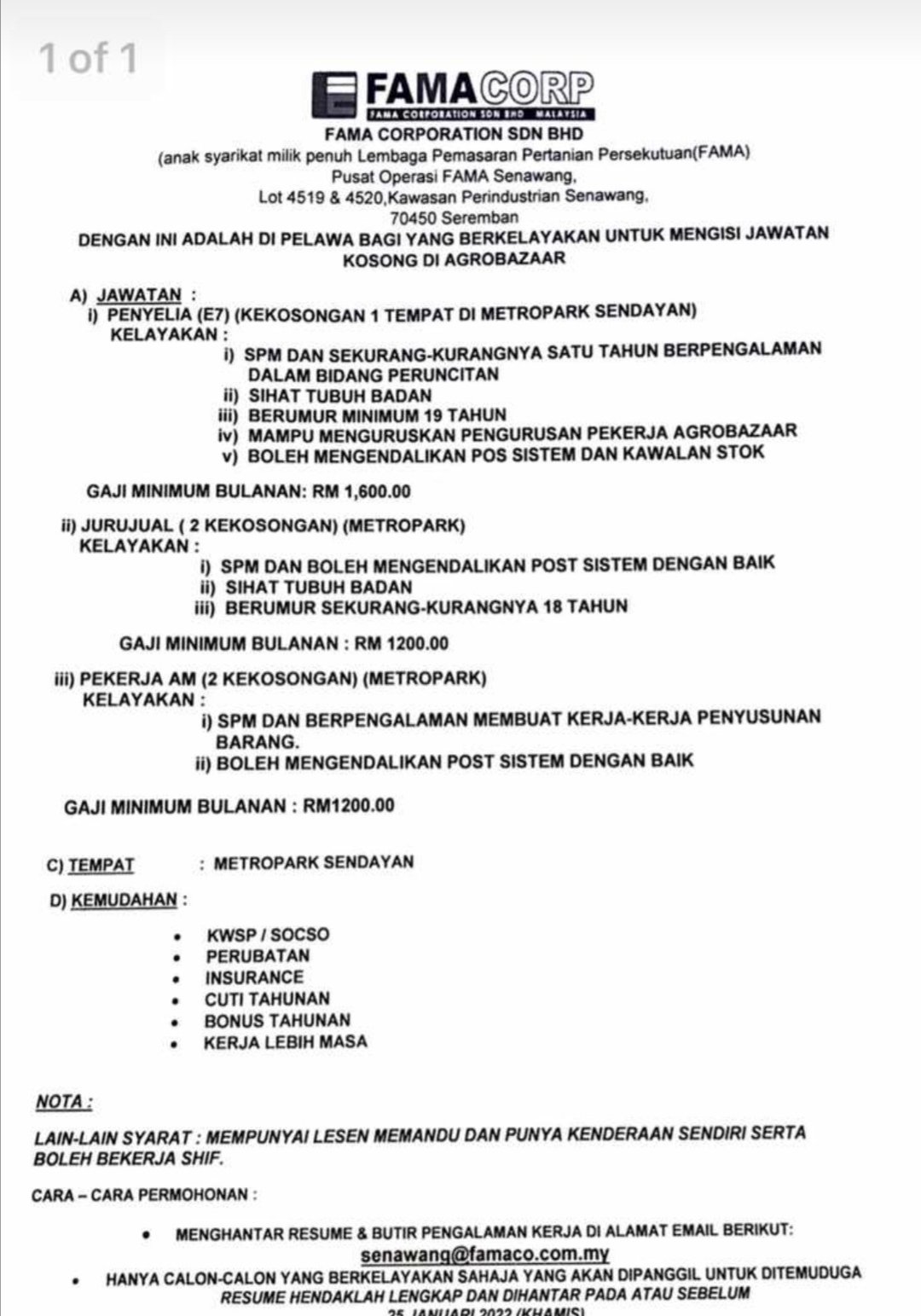 Iklan Jawatan Fama Corporation Sdn Bhd Like serta Ikut Facebook Kami, follow Chanel WhatsApp Jawatan Kosong & Telegram Portal SPA9 untuk capaian pantas kekosongan jawatan daripada kami sekarang.