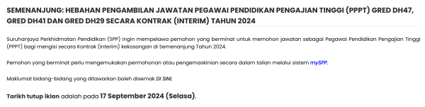 Iklan Hebahan Jawatan Kosong Suruhanjaya Perkhidmatan Pendidikan (SPP)