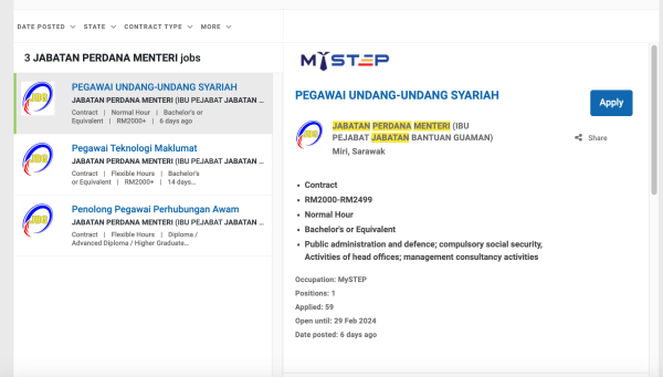 - Setelah mendaftar, anda boleh terus login dan mencari bidang kerjaya yang diinginkan mengikut lokasi yang ditawarkan