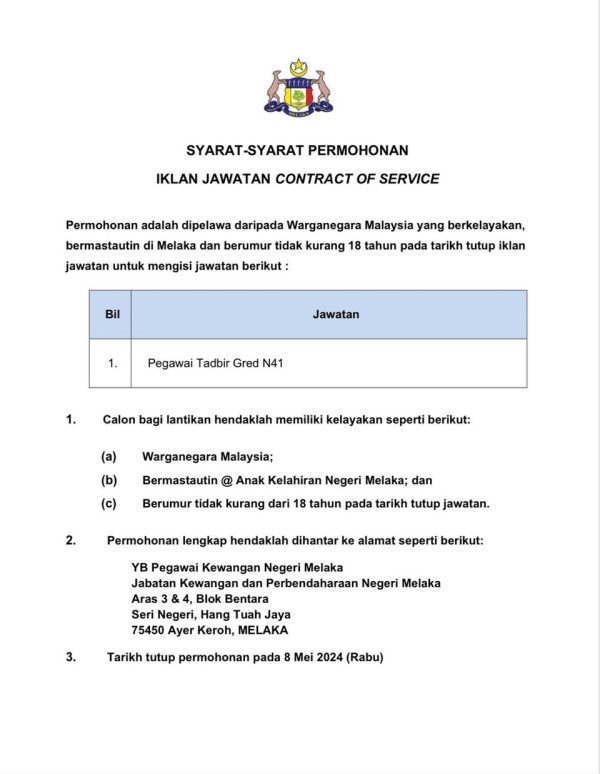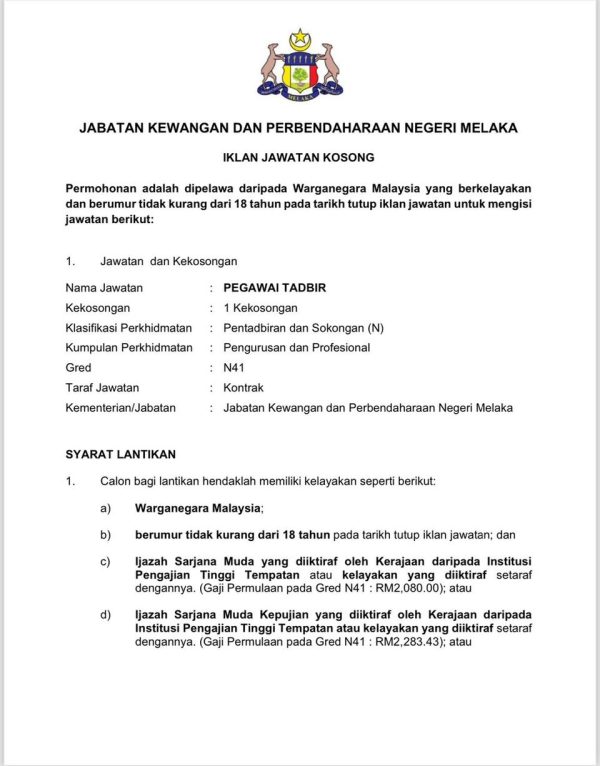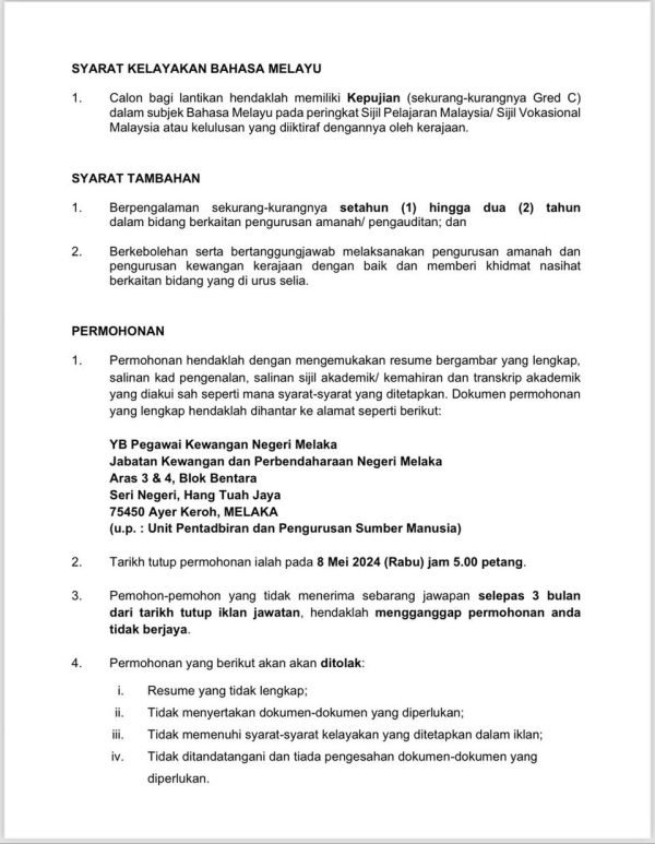 Iklan Jabatan Kewangan Dan Perbendaharaan Negeri Melaka Like serta Ikut Facebook Kami, follow Chanel WhatsApp Jawatan Kosong & Telegram Portal SPA9 untuk capaian pantas kekosongan jawatan daripada kami sekarang.
