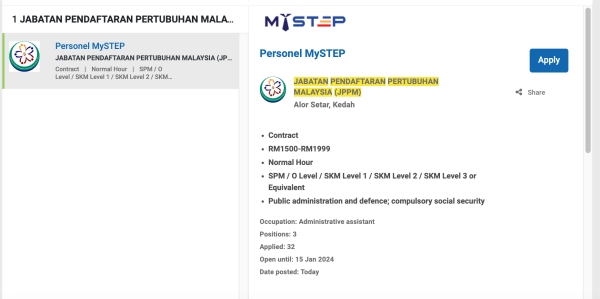 Iklan Jabatan Pendaftaran Pertubuhan Malaysia (JPPM) ~ Personel Mystep Like serta Ikut Facebook Kami, follow Chanel WhatsApp Jawatan Kosong & Telegram Portal SPA9 untuk capaian pantas kekosongan jawatan daripada kami sekarang.