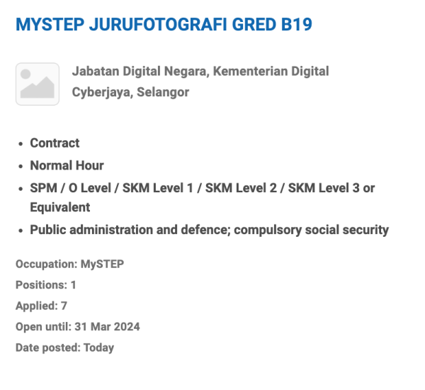 Iklan Jawatab Jabatan Digital Negara, Kementerian Digital