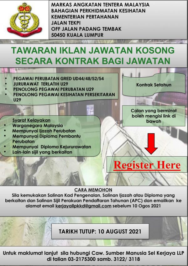 Iklan Jawatan Markas Angkatan Tentera Malaysia Like serta Ikut Facebook Kami, follow Chanel WhatsApp Jawatan Kosong & Telegram Portal SPA9 untuk capaian pantas kekosongan jawatan daripada kami sekarang.
