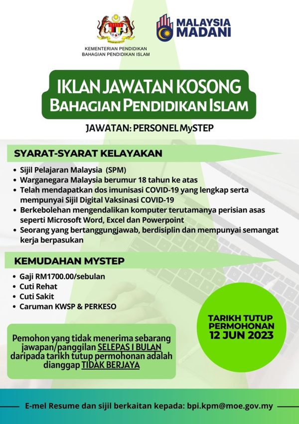 Iklan Jawatan Bahagian Pendidikan Islam, Kementerian Pendidikan Malaysia Like serta Ikut Facebook Kami, follow Chanel WhatsApp Jawatan Kosong & Telegram Portal SPA9 untuk capaian pantas kekosongan jawatan daripada kami sekarang.