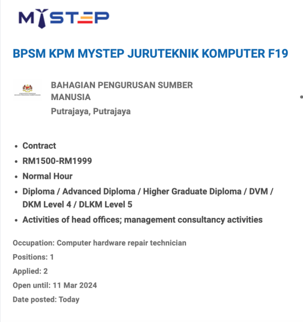 Iklan Jawatan Bahagian Pengurusan Sumber Manusia Kementerian Pendidikan Malaysia