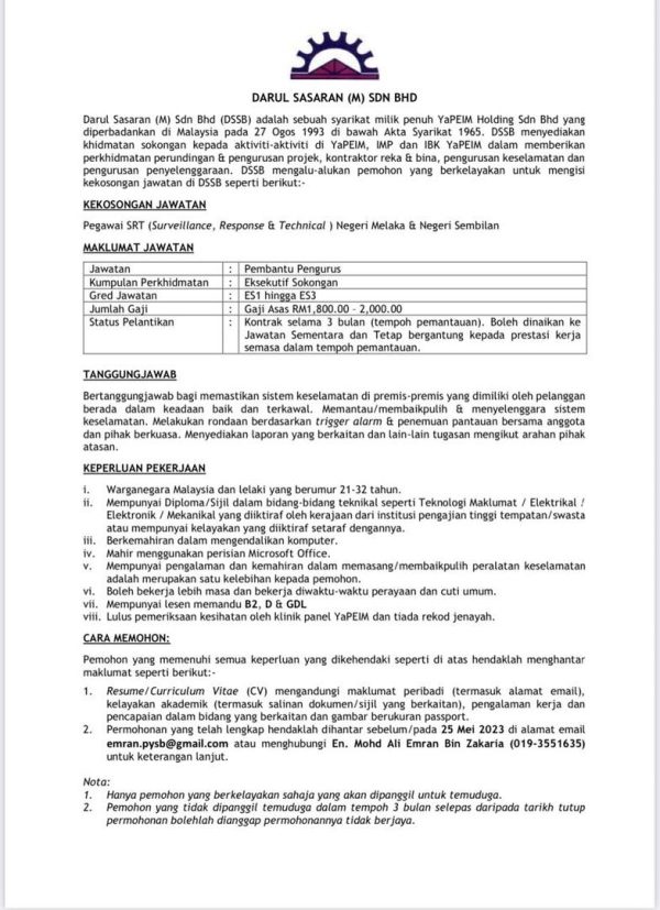 Iklan Jawatan Darul Sasaran Like serta Ikut Facebook Kami, follow Chanel WhatsApp Jawatan Kosong & Telegram Portal SPA9 untuk capaian pantas kekosongan jawatan daripada kami sekarang.