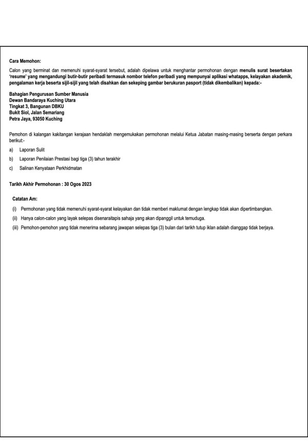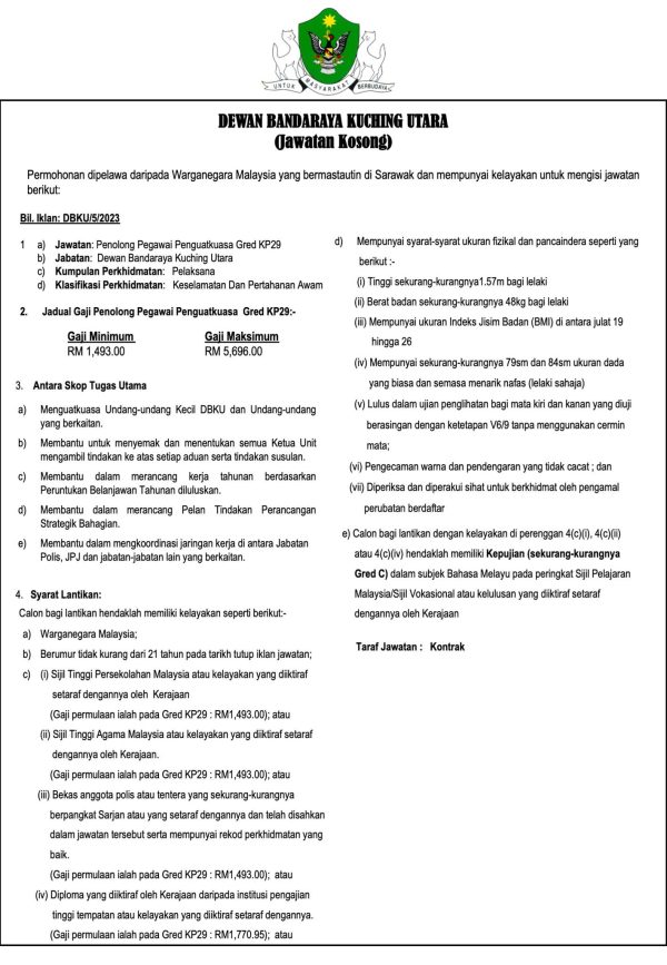 Iklan Jawatan Dewan Bandaraya Kuching Utara (DBKU) Like serta Ikut Facebook Kami, follow Chanel WhatsApp Jawatan Kosong & Telegram Portal SPA9 untuk capaian pantas kekosongan jawatan daripada kami sekarang.