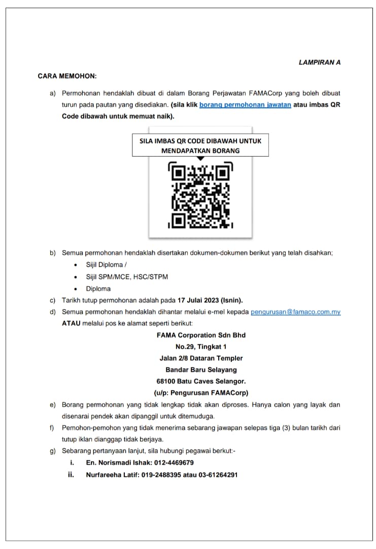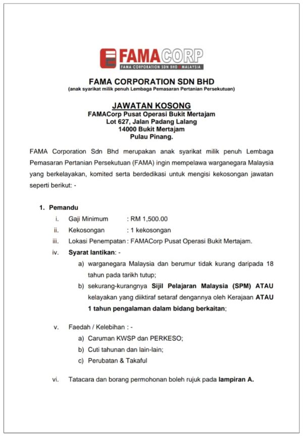 Iklan Jawatan Fama Corporation Sdn Bhd Like serta Ikut Facebook Kami, follow Chanel WhatsApp Jawatan Kosong & Telegram Portal SPA9 untuk capaian pantas kekosongan jawatan daripada kami sekarang.