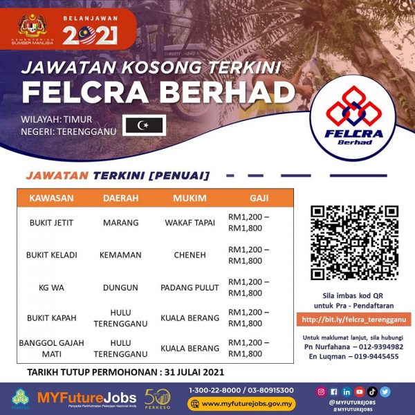 Iklan Jawatan Felcra Berhad Like serta Ikut Facebook Kami, follow Chanel WhatsApp Jawatan Kosong & Telegram Portal SPA9 untuk capaian pantas kekosongan jawatan daripada kami sekarang.