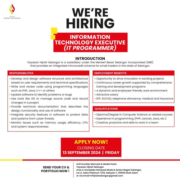 Iklan Jawatan Hijrah Selangor Like serta Ikut Facebook Kami, follow Chanel WhatsApp Jawatan Kosong & Telegram Portal SPA9 untuk capaian pantas kekosongan jawatan daripada kami sekarang. Klik Jawatan Disini