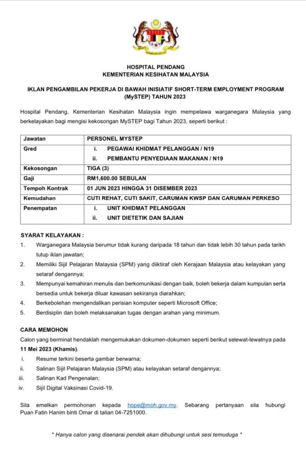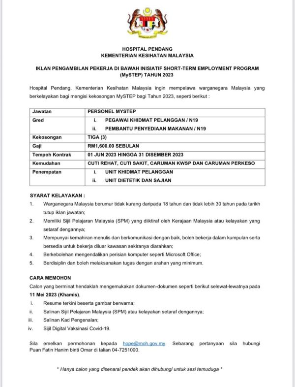 Iklan Jawatan Hospital Pendang Like serta Ikut Facebook Kami, follow Chanel WhatsApp Jawatan Kosong & Telegram Portal SPA9 untuk capaian pantas kekosongan jawatan daripada kami sekarang.