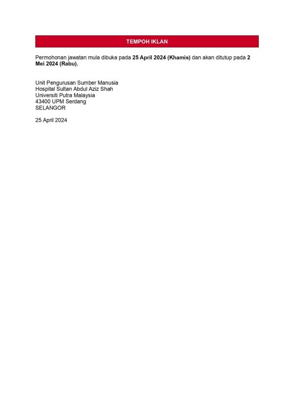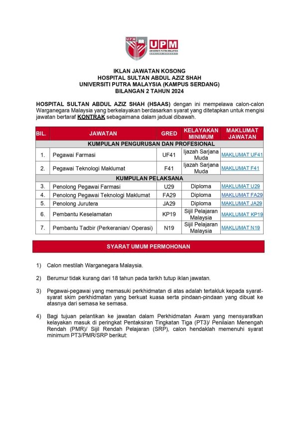 Iklan Jawatan Hospital Sultan Abdul Aziz Shah (HSAAS) Klik Jawatan Disini Like serta Ikut Facebook Kami, follow Chanel WhatsApp Jawatan Kosong & Telegram Portal SPA9 untuk capaian pantas kekosongan jawatan daripada kami sekarang.