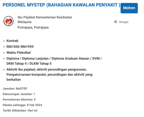 Iklan Jawatan Ibu Pejabat Kementerian Kesihatan Malaysia