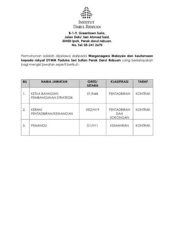 Iklan Jawatan Institut Darul Ridzuan Like serta Ikut Facebook Kami, follow Chanel WhatsApp Jawatan Kosong & Telegram Portal SPA9 untuk capaian pantas kekosongan jawatan daripada kami sekarang.