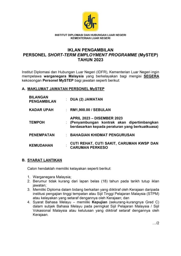 Iklan Jawatan Institut Diplomasi Dan Hubungan Luar Negeri (IDFR) Like serta Ikut Facebook Kami, follow Chanel WhatsApp Jawatan Kosong & Telegram Portal SPA9 untuk capaian pantas kekosongan jawatan daripada kami sekarang.