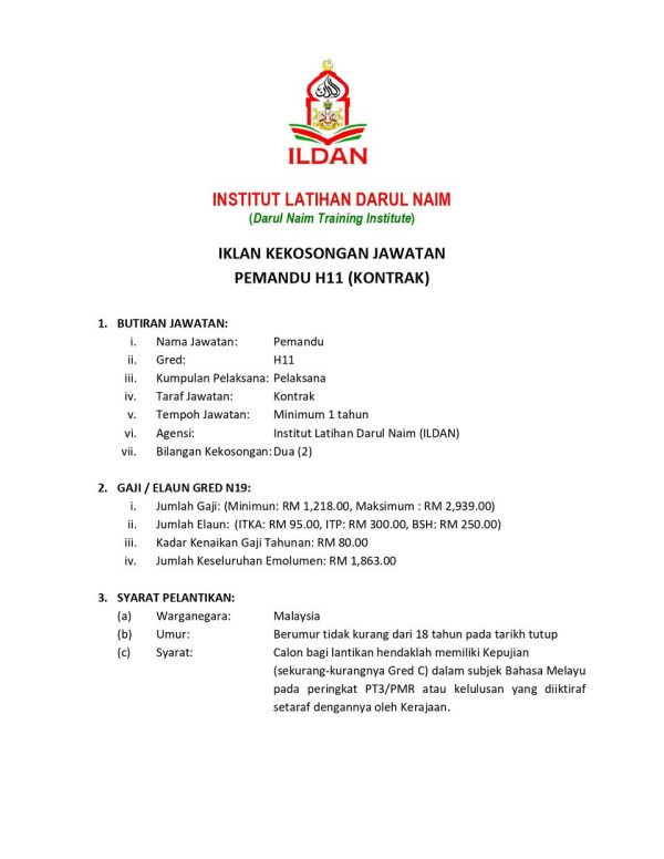 Iklan Jawatan Institut Latihan Darul Naim (ILDAN) Like serta Ikut Facebook Kami, follow Chanel WhatsApp Jawatan Kosong & Telegram Portal SPA9 untuk capaian pantas kekosongan jawatan daripada kami sekarang.