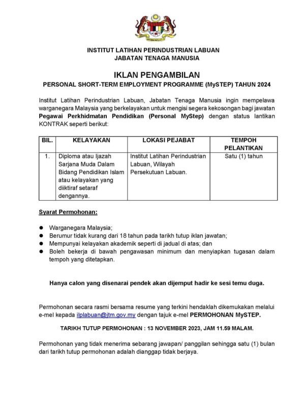 Iklan Jawatan Institut Latihan Perindustrian Like serta Ikut Facebook Kami, follow Chanel WhatsApp Jawatan Kosong & Telegram Portal SPA9 untuk capaian pantas kekosongan jawatan daripada kami sekarang.