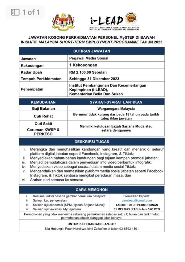Iklan Jawatan Institut Pembangunan dan Kecemerlangan Kepimpinan Like serta Ikut Facebook Kami, follow Chanel WhatsApp Jawatan Kosong & Telegram Portal SPA9 untuk capaian pantas kekosongan jawatan daripada kami sekarang.