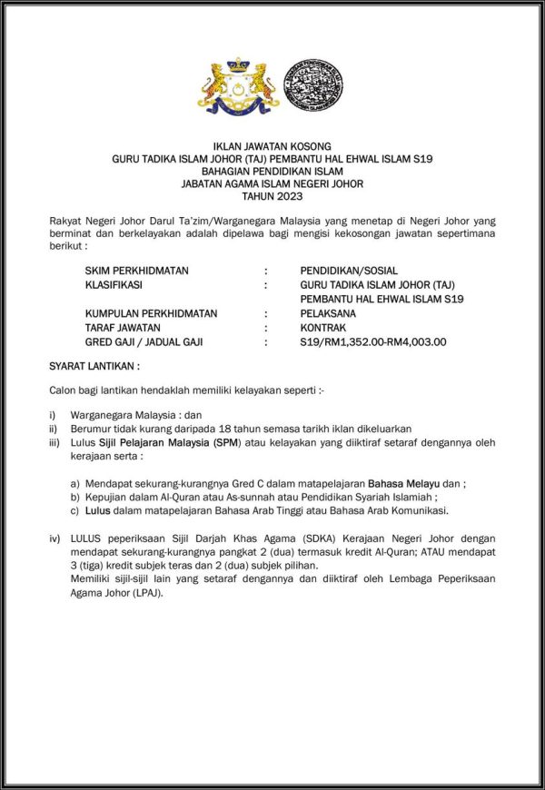 Iklan Jawatan Jabatan Agama Islam Negeri Johor