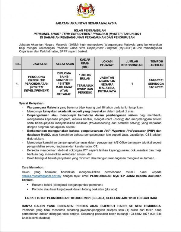 Iklan Jawatan Jabatan Akauntan Negara Malaysia Like serta Ikut Facebook Kami, follow Chanel WhatsApp Jawatan Kosong & Telegram Portal SPA9 untuk capaian pantas kekosongan jawatan daripada kami sekarang.