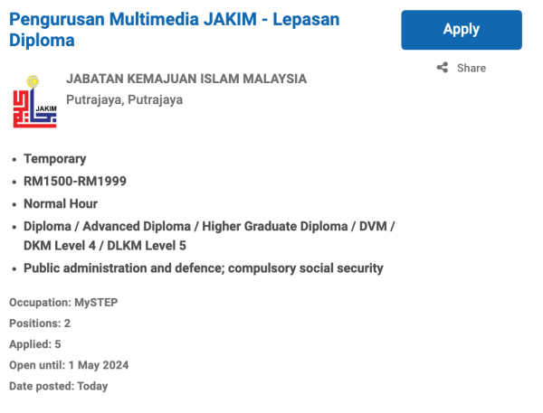 Iklan Jawatan Jabatan Kemajuan Islam Malaysia