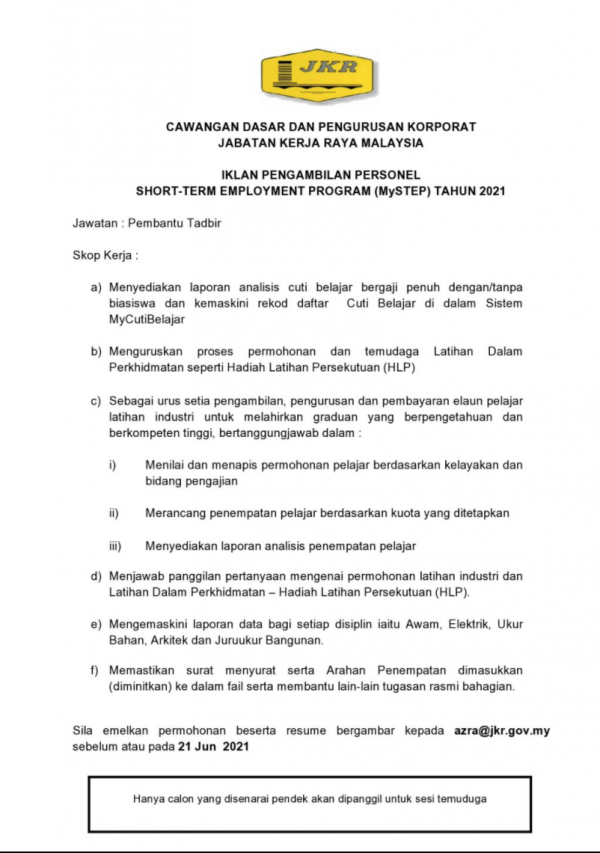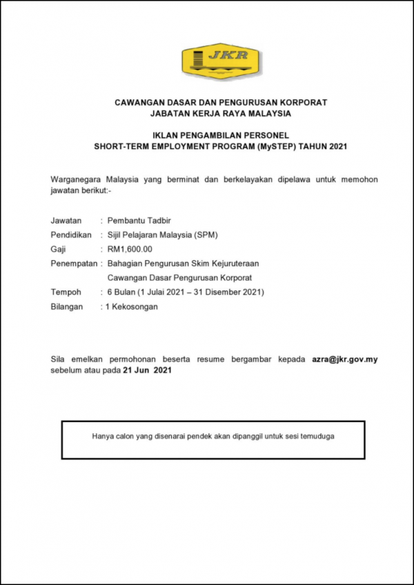 Iklan Jawatan Jabatan Kerja Raya Like serta Ikut Facebook Kami, follow Chanel WhatsApp Jawatan Kosong & Telegram Portal SPA9 untuk capaian pantas kekosongan jawatan daripada kami sekarang.