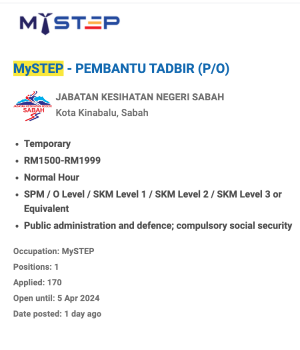 Iklan Jawatan Jabatan Kesihatan Negeri Sabah