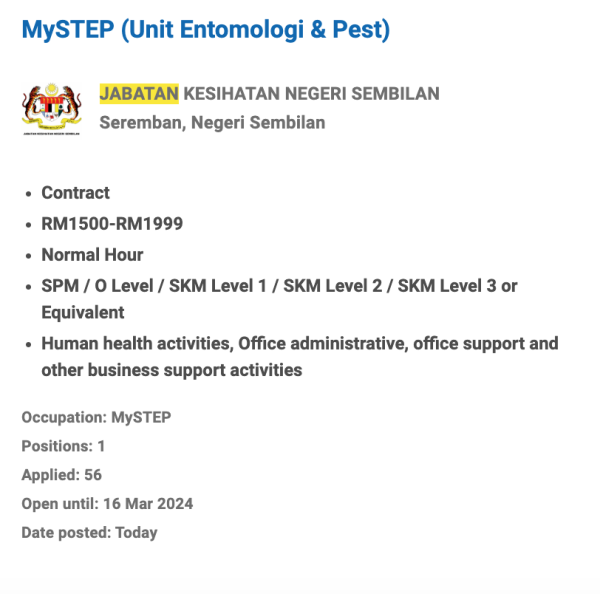 Iklan Jawatan Jabatan Kesihatan Negeri Sembilan