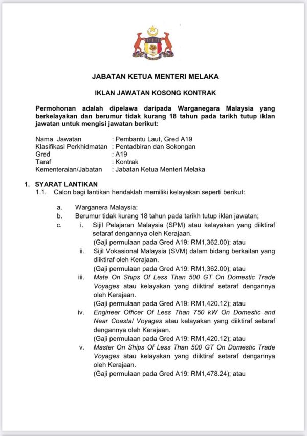 Iklan Jawatan Jabatan Ketua Menteri Melaka an Jabatan Ketua Menteri Melaka Like serta Ikut Facebook Kami, follow Chanel WhatsApp Jawatan Kosong & Telegram Portal SPA9 untuk capaian pantas kekosongan jawatan daripada kami sekarang.
