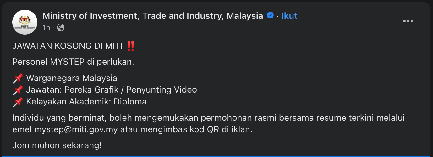 Iklan Jawatan Jabatan Pembangunan Wanita ~ Personel Mystep Like serta Ikut Facebook Kami, follow Chanel WhatsApp Jawatan Kosong & Telegram Portal SPA9 untuk capaian pantas kekosongan jawatan daripada kami sekarang.