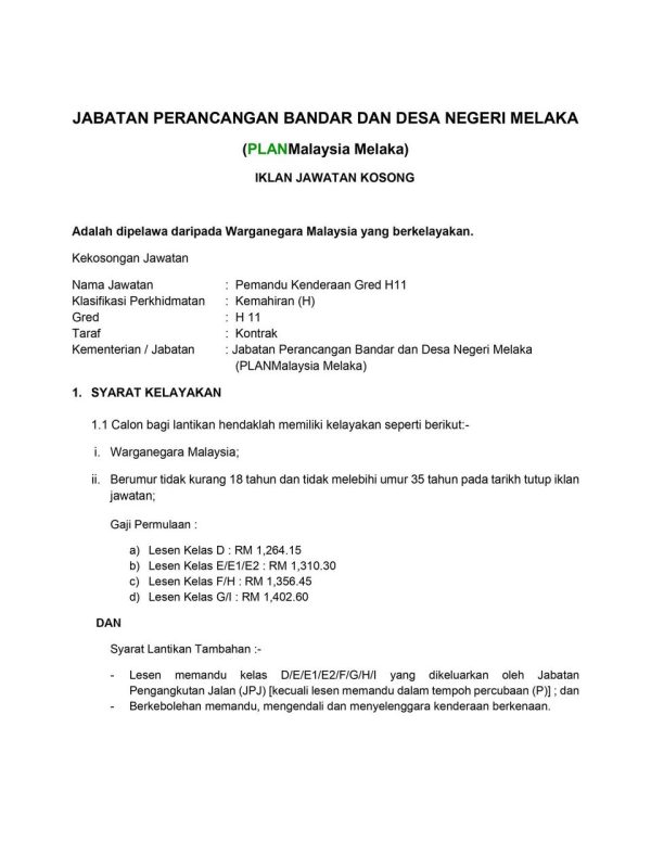 Iklan Jawatan Jabatan Perancangan Bandar Dan Desa (PLANMalaysia)
