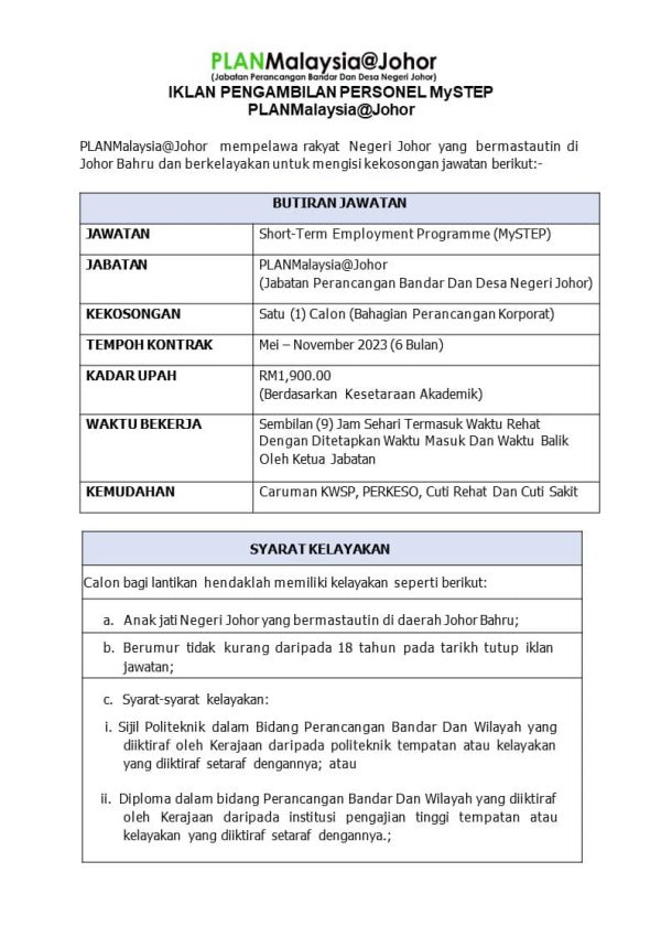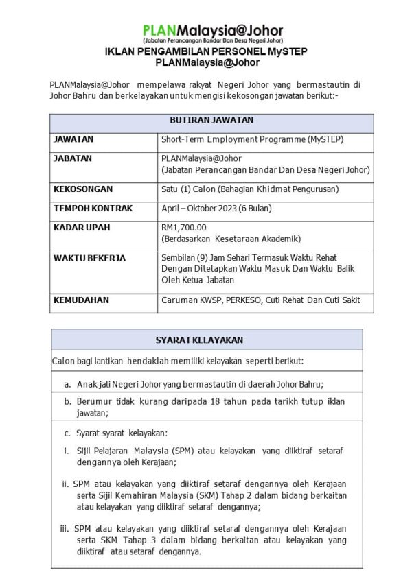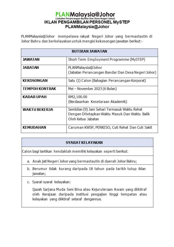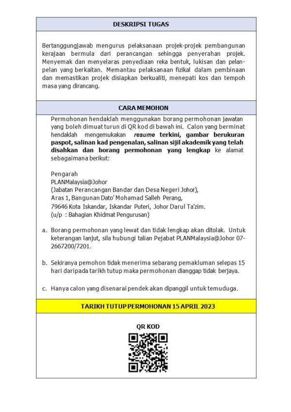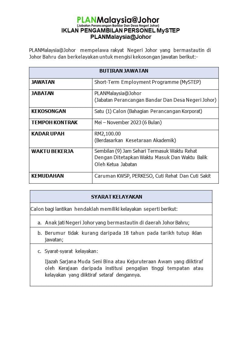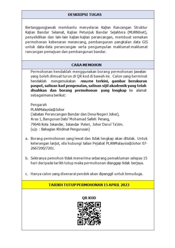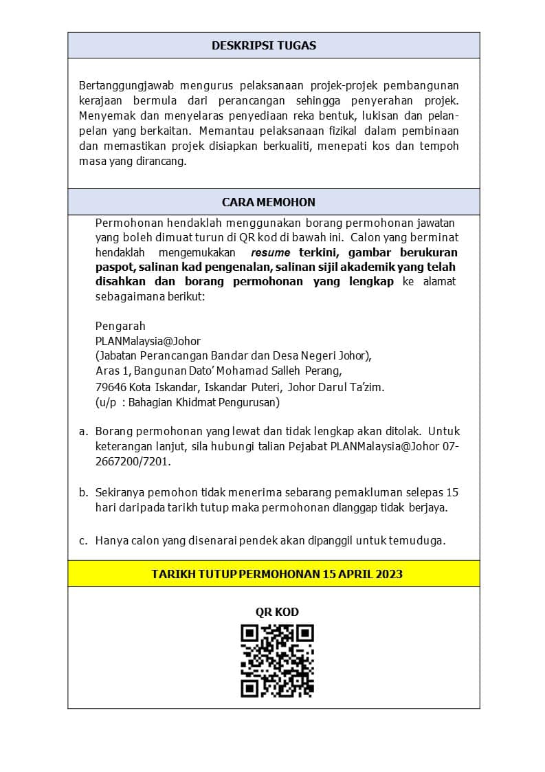 Iklan Jawatan Jabatan Perancangan Bandar Dan Desa (PLANMalaysia) Like serta Ikut Facebook Kami, follow Chanel WhatsApp Jawatan Kosong & Telegram Portal SPA9 untuk capaian pantas kekosongan jawatan daripada kami sekarang.