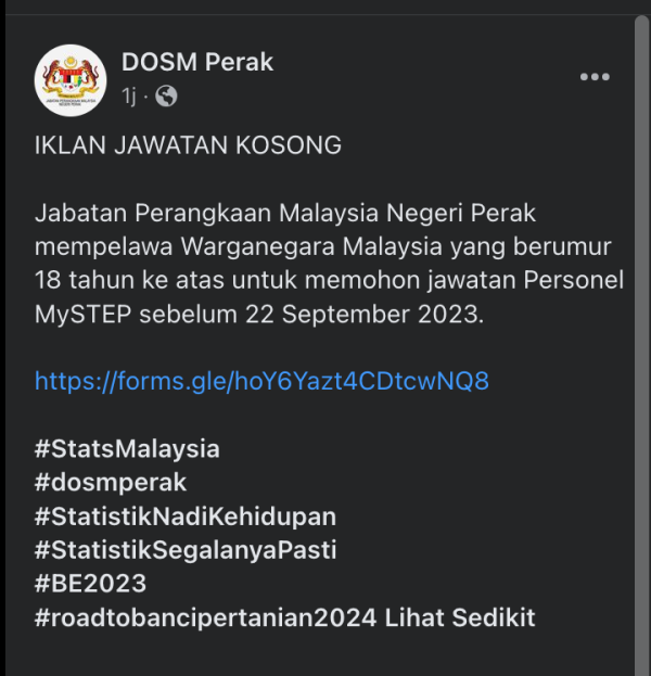 IKlan Jawatan Jabatan Perangkaan Malaysia Negeri Perak Like serta Ikut Facebook Kami, follow Chanel WhatsApp Jawatan Kosong & Telegram Portal SPA9 untuk capaian pantas kekosongan jawatan daripada kami sekarang. Klik Jawatan Disini