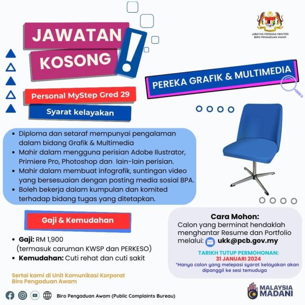 Iklan Jawatan Jabatan Perdana Menteri (JPM) Like serta Ikut Facebook Kami, follow Chanel WhatsApp Jawatan Kosong & Telegram Portal SPA9 untuk capaian pantas kekosongan jawatan daripada kami sekarang.