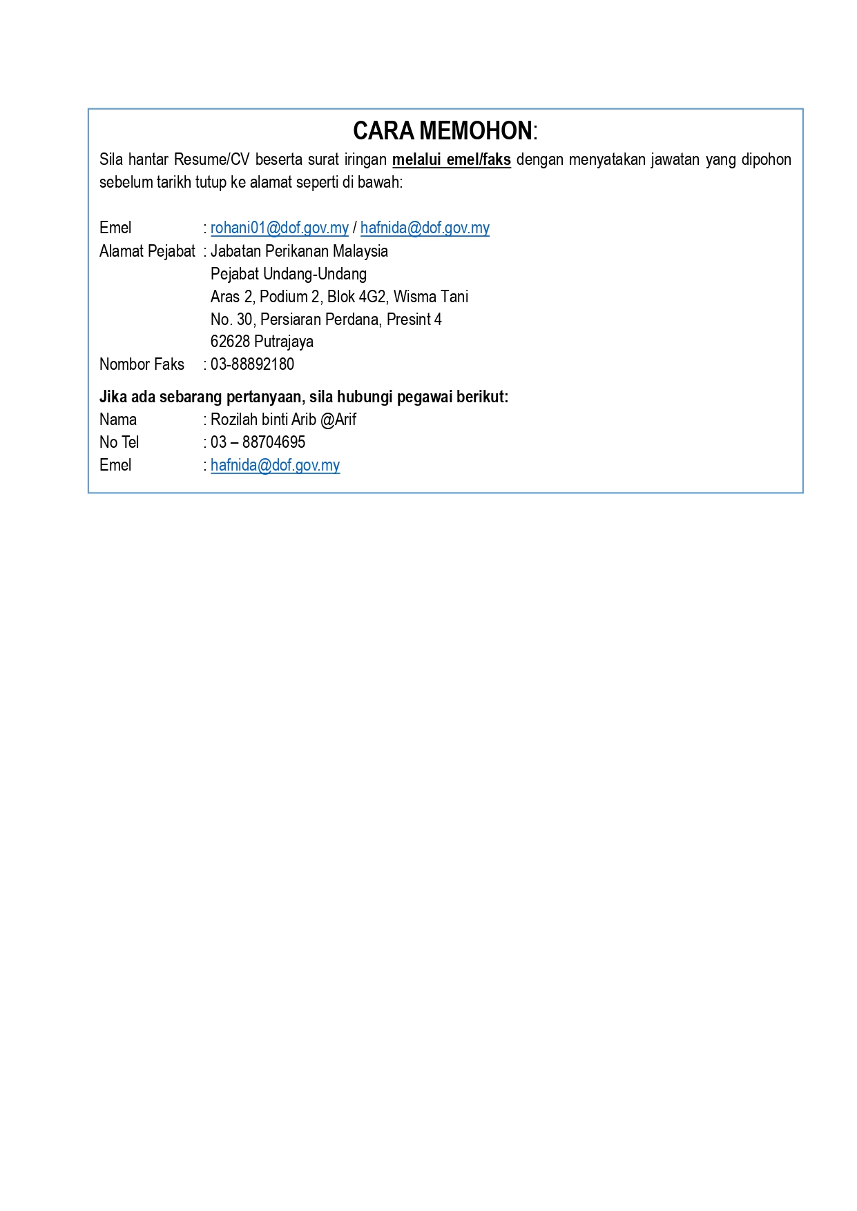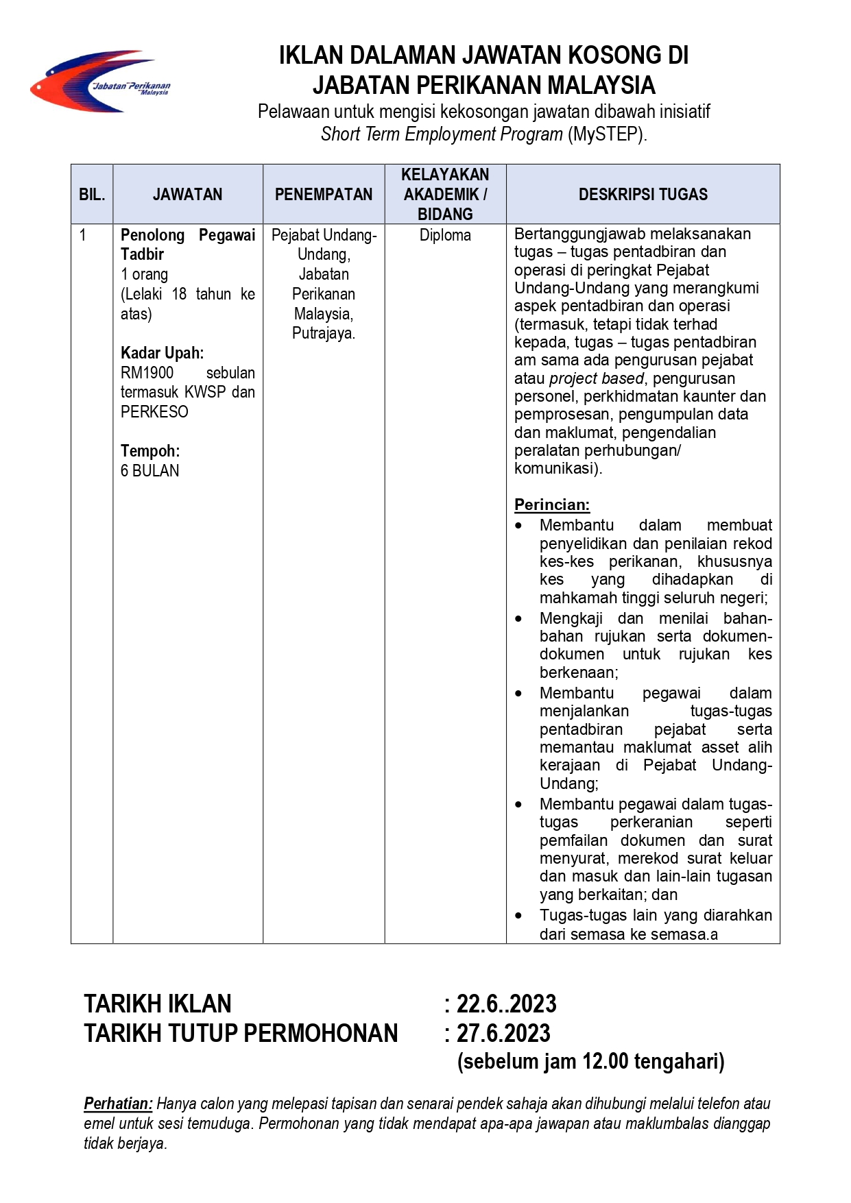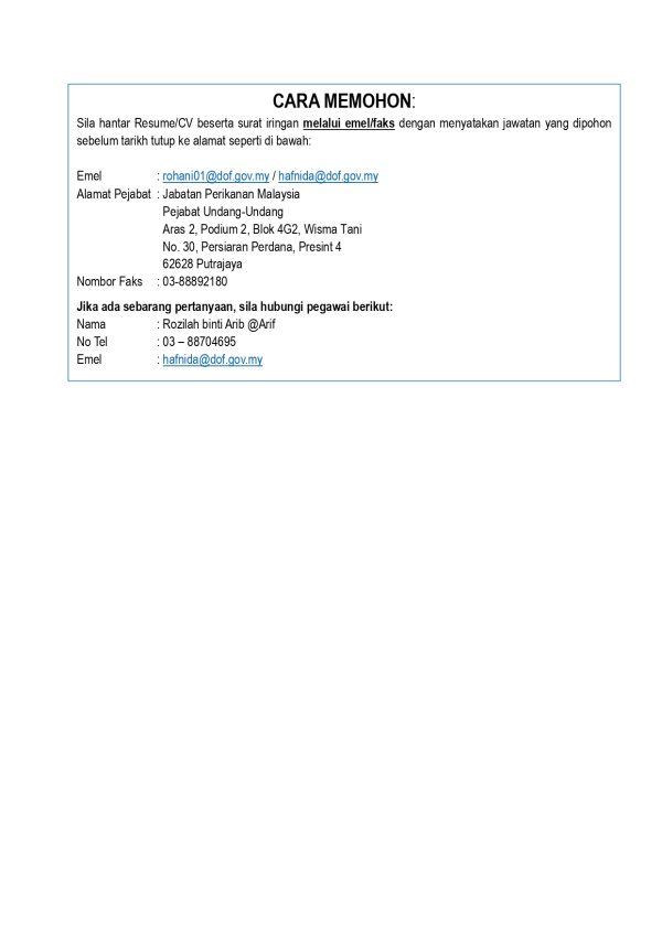 Iklan Jawatan Jabatan Perikanan Malaysia (DOF)