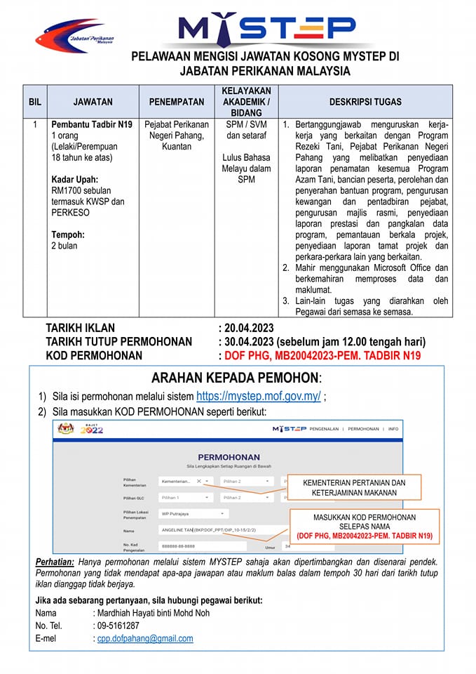 Iklan Jawatan Jabatan Perikanan Malaysia Like serta Ikut Facebook Kami, follow Chanel WhatsApp Jawatan Kosong & Telegram Portal SPA9 untuk capaian pantas kekosongan jawatan daripada kami sekarang.