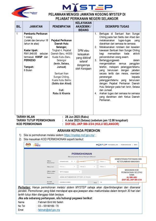 Iklan Jawatan Jabatan Perikanan Negeri Selangor Like serta Ikut Facebook Kami, follow Chanel WhatsApp Jawatan Kosong & Telegram Portal SPA9 untuk capaian pantas kekosongan jawatan daripada kami sekarang.