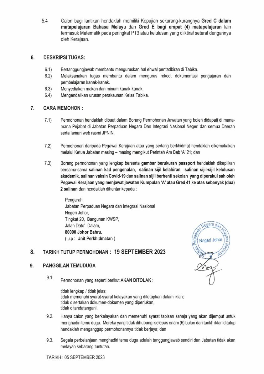 Iklan Jawatan Jabatan Perpaduan Negara Dan Integrasi Nasional (JPNIN) Klik Jawatan Disini Like serta Ikut Facebook Kami, follow Chanel WhatsApp Jawatan Kosong & Telegram Portal SPA9 untuk capaian pantas kekosongan jawatan daripada kami sekarang.
